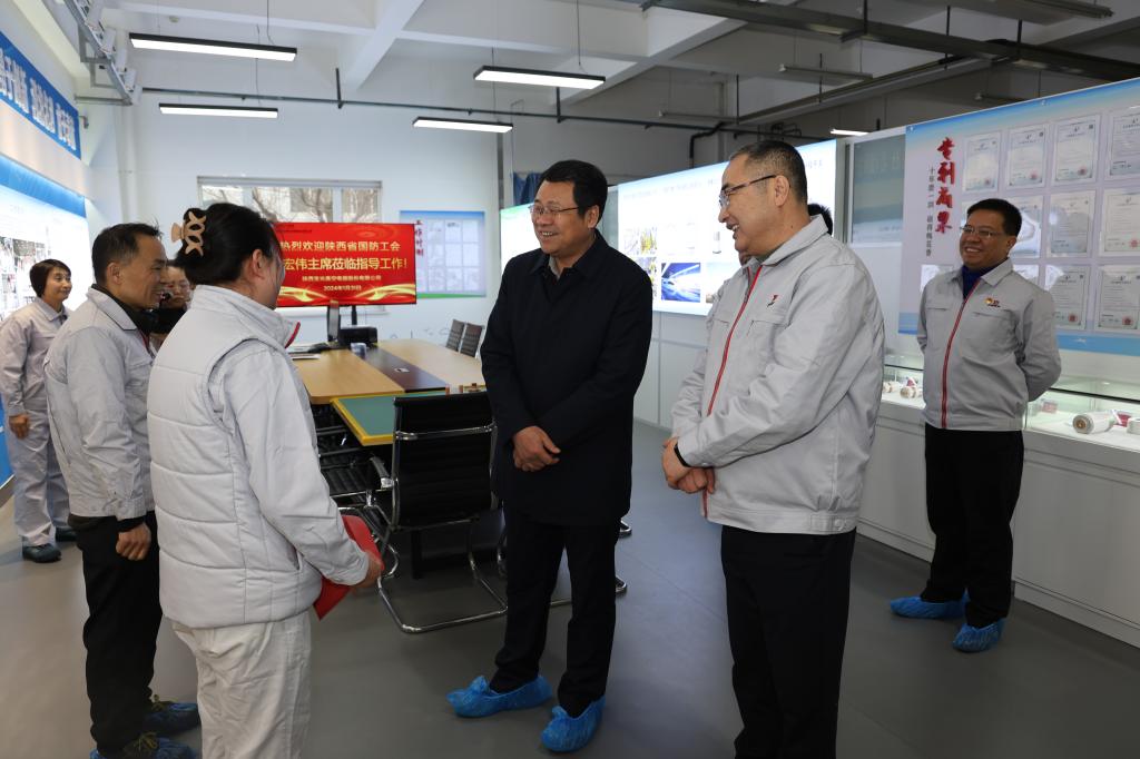 1月31日下午,陜西省國防工會主席馬宏偉、綜合部部長張鵬一行到寶光集團調研,并慰問全國勞模及困難職工。寶光集團黨委書記、董事長、總經理謝洪濤,黨委副書記、紀委書記、工會主席姚書勤陪同調研慰問。