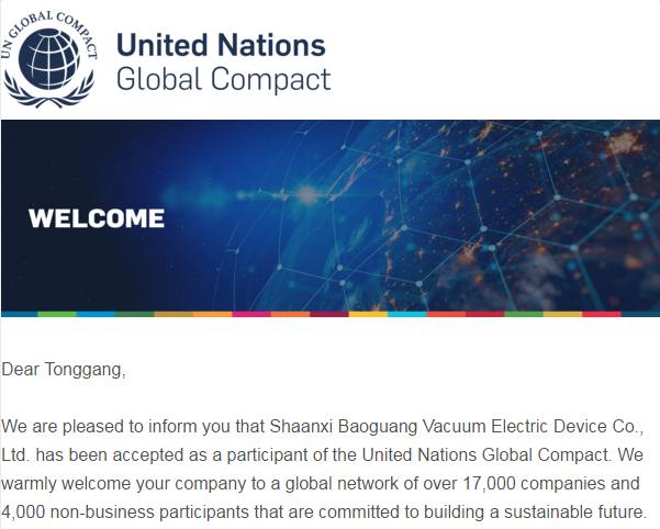 近日,寶光股份正式批準(zhǔn)加入聯(lián)合國全球契約組織(United Nations Global Compact,簡稱UNGC),標(biāo)志著寶光股份在提升國際品牌形象、深化企業(yè)社會責(zé)任實(shí)踐方面邁出了堅(jiān)實(shí)的一步。