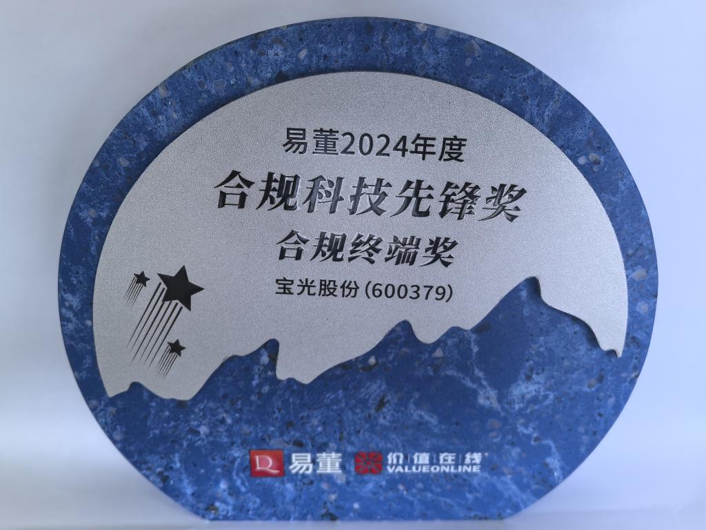 近日,由價(jià)值在線、董事會(huì)雜志社聯(lián)合主辦的易董2024年度合規(guī)科技先鋒獎(jiǎng)揭曉。寶光股份憑借在合規(guī)管理工作上的優(yōu)異表現(xiàn),斬獲“易董2024年度合規(guī)科技先鋒獎(jiǎng)——合規(guī)終端獎(jiǎng)”。