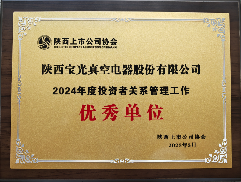 5月15日,陜西上市公司協(xié)會與陜西證券期貨業(yè)協(xié)會聯(lián)合發(fā)布2024年度評優(yōu)結(jié)果,寶光股份憑借在投資者關(guān)系管理領(lǐng)域的卓越實踐,榮獲“2024年度投資者關(guān)系管理工作優(yōu)秀單位”稱號,這是對公司長期以來重視投資者關(guān)系管理的高度認(rèn)可。