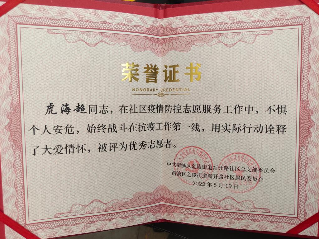他告訴我,他的志愿服務之路開始于公司,在加入公司的志愿者信息庫之后,他更多地結交到志同道合的朋友,積極參與到志愿服務活動之中。提交入黨申請書之后,他決心加入黨組織,嚴格要求自己。被確定為入黨積極分子之后,他更加堅定了這份信念,他認認真真,勤勤懇懇,保質保量完成工作任務,生活中積極擔負起服務社會的責任,從社會需要做起,哪里需要往哪里搬,趁年輕多做有意義的事。他用樸實的話語和真誠的行動,印證了“聽黨話 跟黨走 一顆紅心永向黨”的信念。現在,他已經成長為一名合格的預備黨員。