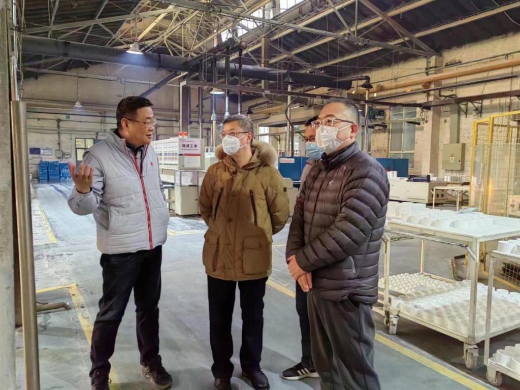 隨后,一行人在來到會議室與管理團隊進行溝通交流,陶瓷科技負責人閻濤介紹了子公司春節期間的生產情況,并闡述了一季度初步工作安排。袁軍為結合實際指出,子公司要以白瓷自動車坯線、白瓷窯爐智能制造和擴產項目為契機進一步提高產能,靈活調整產品結構,確保內配產品市場份額,擴大外銷收入和盈利能力,爭取在軍品和高端產品銷售再上臺階。