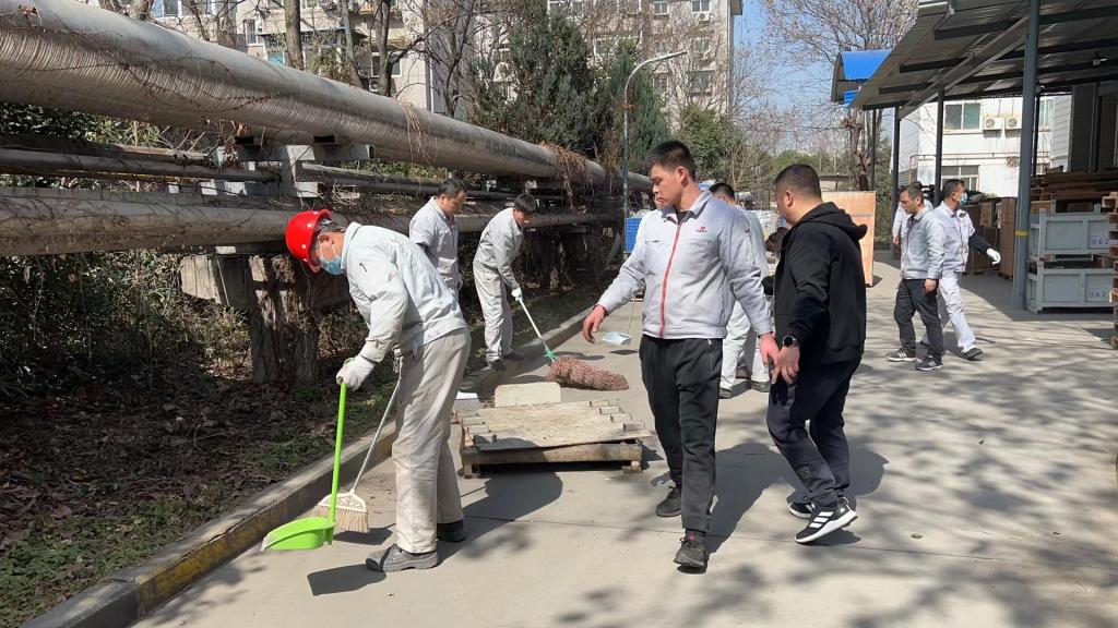 精工分公司黨支部電器產(chǎn)線職工對產(chǎn)線窗戶上玻璃和窗臺進行擦拭,并對花壇內(nèi)樹葉垃圾、花房前建筑垃圾進行了仔細清掃和集中裝運清理;波紋管產(chǎn)線職工對產(chǎn)線外車棚地段衛(wèi)生進行清理,并對亂停亂放的車輛進行規(guī)范擺放。通過2個小時的緊張勞動,路面變得整潔干凈、窗戶玻璃變得一塵不染、花房前的環(huán)境煥然一新